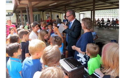 Am Dienstag, 21. Juli, trafen sich die Grundschüler der dritten Klassen der Brüder-Grimm-Schule mit ihren Lehrerinnen zum dritten Solarbootrennen in unserer Schule. Das Rennen wird im Rahmen der MINT-Aktivitäten durchgeführt.