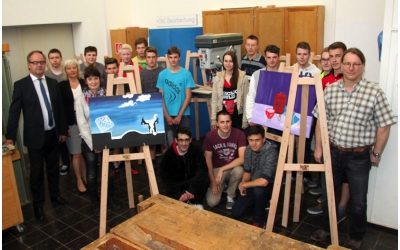 Die Schüler und Schülerinnen der Blumensteinschule Obersuhl präsentierten stolz ihre Staffeleien, die sie zusammen mit den Tischlerauszubildenden des 3. Ausbildungsjahres der Beruflichen Schulen Bebra gefertigt hatten.