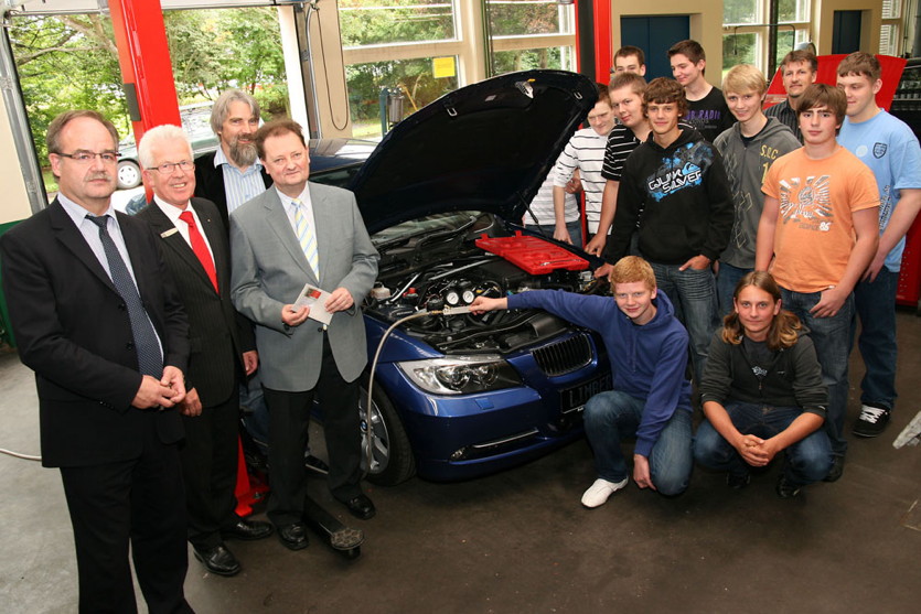 „So können die Schülerinnen und Schüler nicht nur in der Theorie, sondern auch in der Praxis lernen, wann ein Motor an seiner Verschleißgrenze angelangt ist“, freut sich Herbert Heisterkamp, der Vorsitzende des Verein zur Förderung der Aus- und Weiterbildung an den Beruflichen Schulen Bebra über die Spende der Sparkasse.