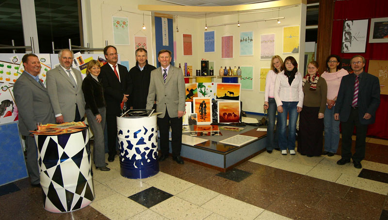 Weit über 100 selbstentworfene und -hergestellte Zeichnungen, Aquarelle, Plakate, Holz-, Metall- und Textilarbeiten, Oberflächenstrukturen, Beschichtungsarbeiten mit Farben, Formen bis hin zur Kunstgeschichte bestaunten die schätzungsweise 250 Gäste, die bei der Eröffnung der Vernissage der Fachoberschule Gestaltung anwesend waren.