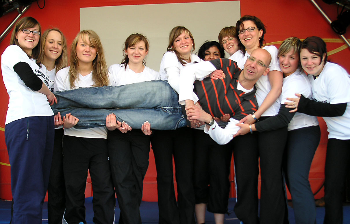 Eine „fetzigere“ und sogar bühnenreife Variante dieser gesundheitsorientierten Gymnastik übten zehn Schülerinnen der Fachoberschulklasse zwölf, der Fachoberschule Gestaltung ein. Sie selbst übernahmen einen Großteil der Choreographie übten sie selbst ein. Ihre Lehrer Fred Baumert, Heinrich Müller und Marco Vogel unterstützten sie selbstverständlich dabei.