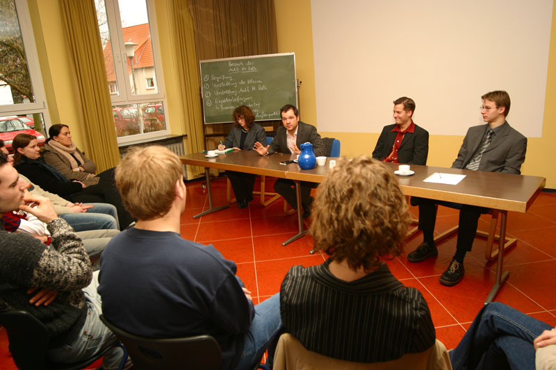 Egal, ob Hartz IV, Gesundheitswesen, Schließungen von Bundeswehrstandorten, Renten, Flutopfer, Entwicklungshilfe, EU-Erweiterung, aber auch lokalbezogene Themen, die 50 Schülerinnen und Schüler hatten viele Fragen. Michael Roth stand ihnen Rede und Antwort. Er gab nicht nur die offiziellen Statements, sondern sagte auch seine persönliche Meinung zu den angesprochenen Themen. Es kam zu einer angeregten Diskussion. Doch bevor die Gesprächsrunde so richtig in Gang kam, stellten beide Seiten vor: Die Klassensprecher der Fachoberschulklasse Wirtschaft und Verwaltung sowie der Teilzeitberufsschulklassen der Verwaltungsfachangestellten der Kommunen, der Bundeswehr- und Bundesgrenzschutzverwaltungen berichteten über ihre Ausbildung. Michael Roth erläuterte die Arbeitsweise im Bundestag und im heimischen Wahlkreis. Darüber hinaus gab er Auskünfte über seinen Lebenslauf und zeigte den Jugendlichen Möglichkeiten auf, welche Möglichkeiten bestehen, sich am politischen Leben zu beteiligen, oder sogar in die Politik einzusteigen.