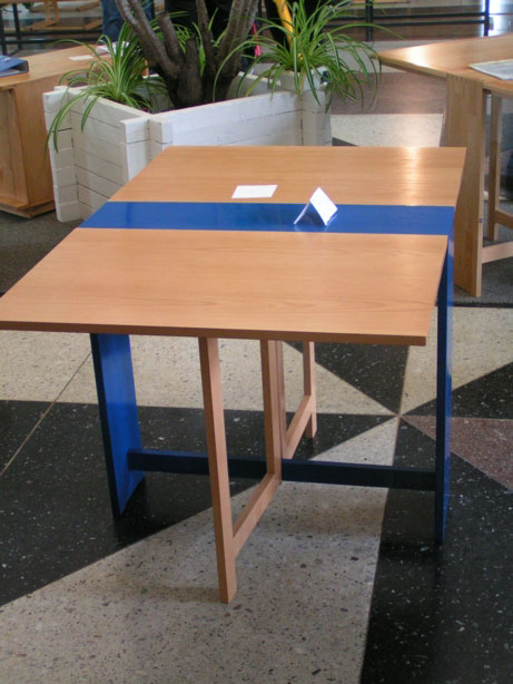 Sowohl der Theorie- als auch der Praxisunterricht wurden genutzt, um diese Möbelstücke zu realisieren. Von den Zeichnungen über die Material- und Arbeitsplanung bis zur vollständigen Fertigung im Rahmen einer Projektwoche sowie der Montage lag die gesamte Arbeit in den Händen der Schüler, deren Lehrer sie anleiteten und unterstützten. Sehr förderlich war auch die intensive Zusammenarbeit mit den Ausbildungsbetrieben, aus deren Reihen der Entwurf für den Singletisch stammte.
