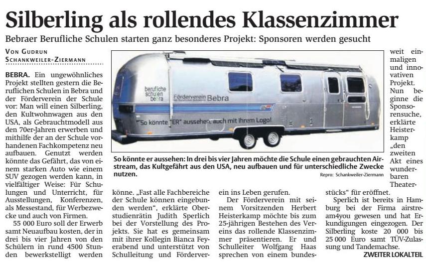 Die HNA berichtete am 20. Dezember 2016 in der Ausgabe Rotenburg/Bebra auf der Seite 1 wie folgt über das Vorhaben: