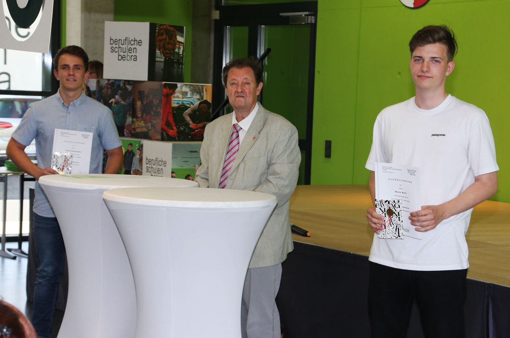 Bild 03: Simon Waniaschefsky, Herbert Heisterkamp (Fördervereinsvorsitzender), Marvin Weitz, Jahrgangsbester