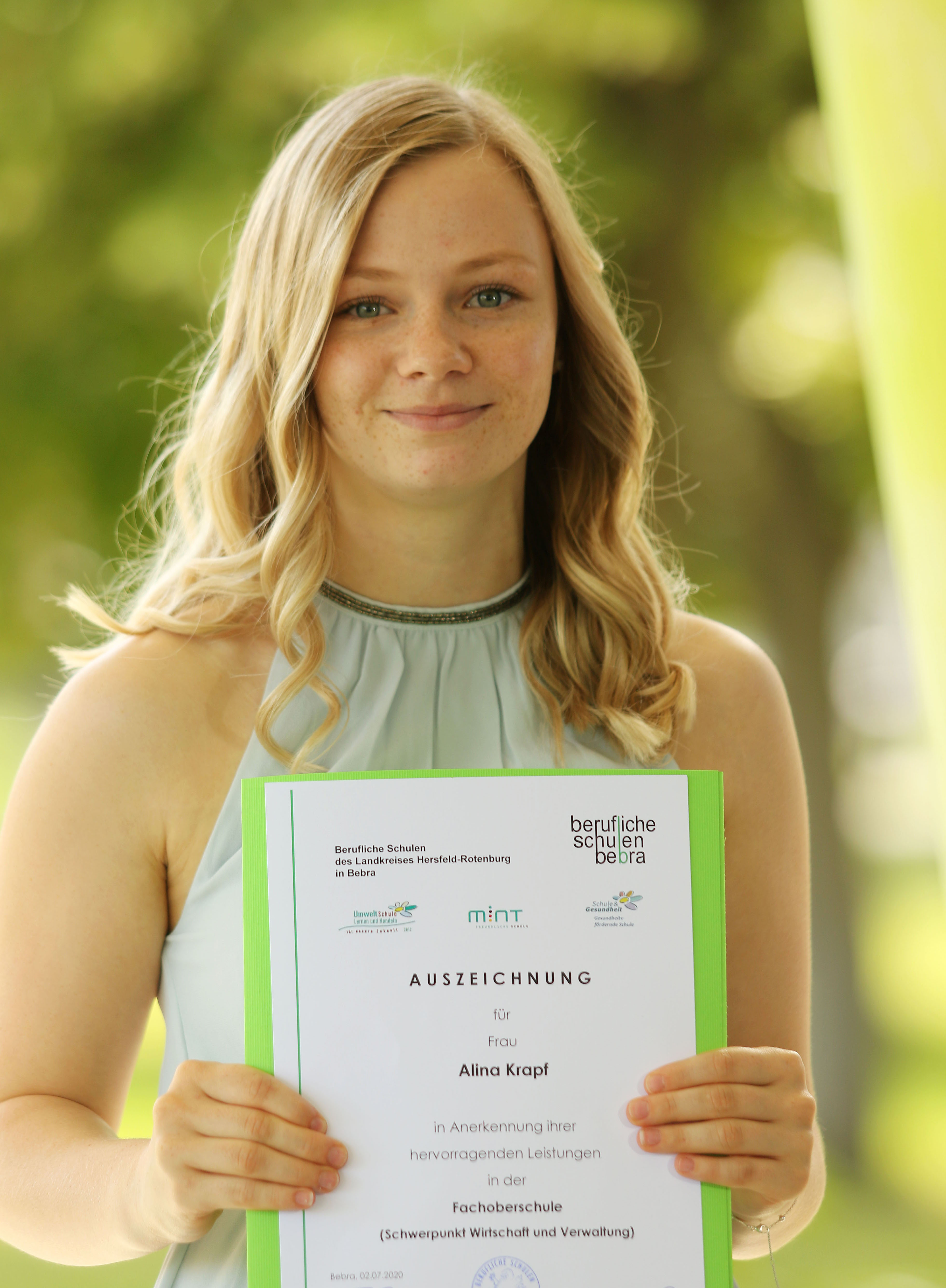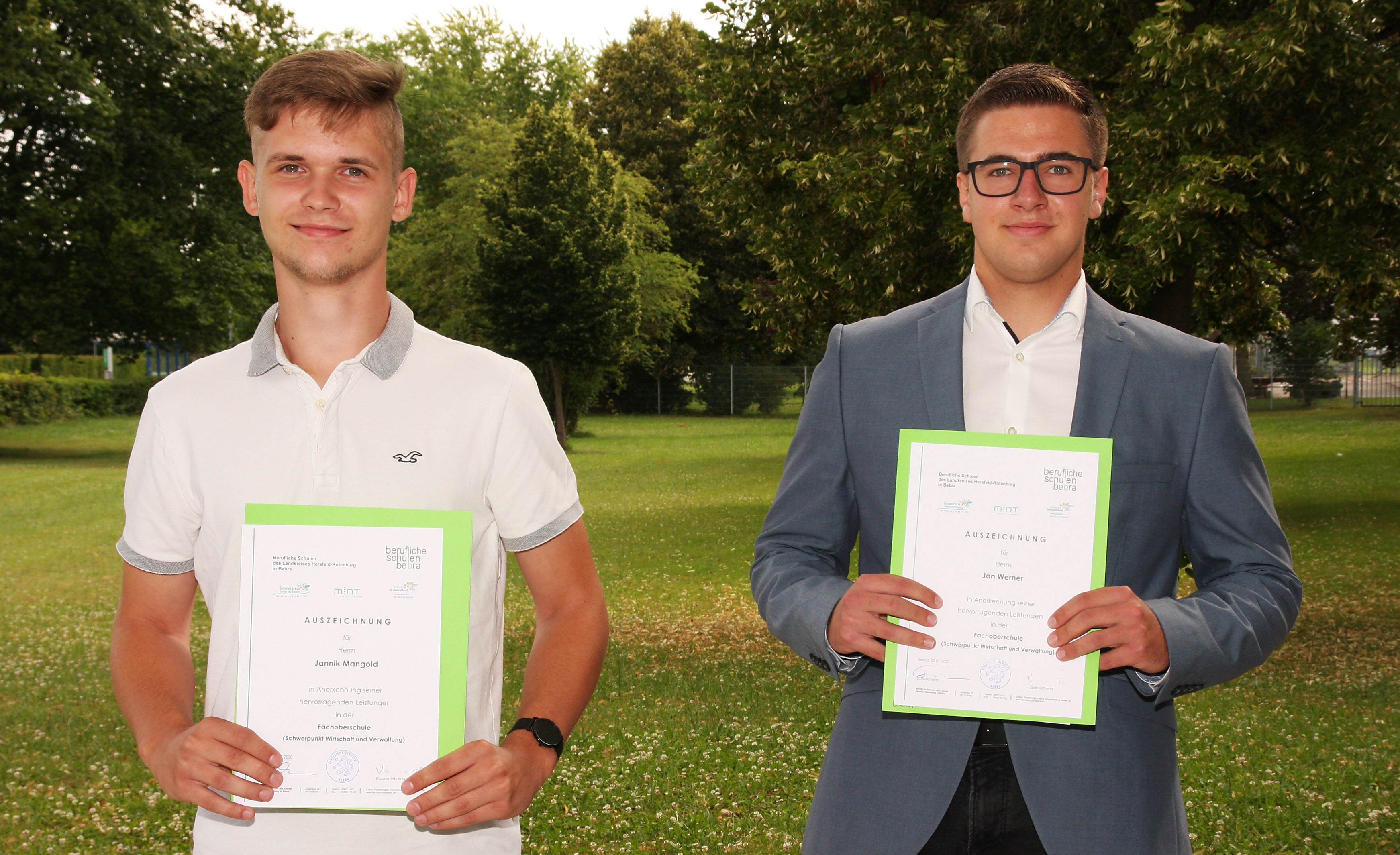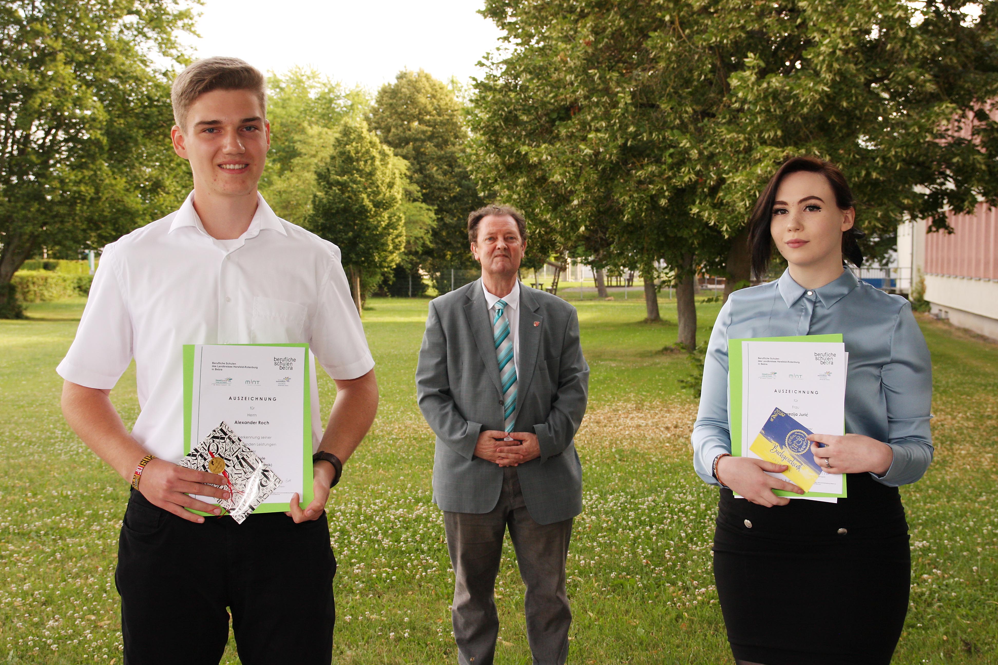 Für besondere Leistungen wurden in diesem Jahr) im Bereich Wirtschaft und Verwaltung Alina Krapf (1,7), Jan Werner (2,0), Jannik Mangold (2,0) geehrt. Alexander Roch (1,5) konnte die Beruflichen Schulen Bebra als bester Fachabiturient verlassen. Dicht gefolgt von Terezija Juric (1,5) aus dem Fachbereich Gestaltung, die die zweitbesten Leistungen erzielen konnte.