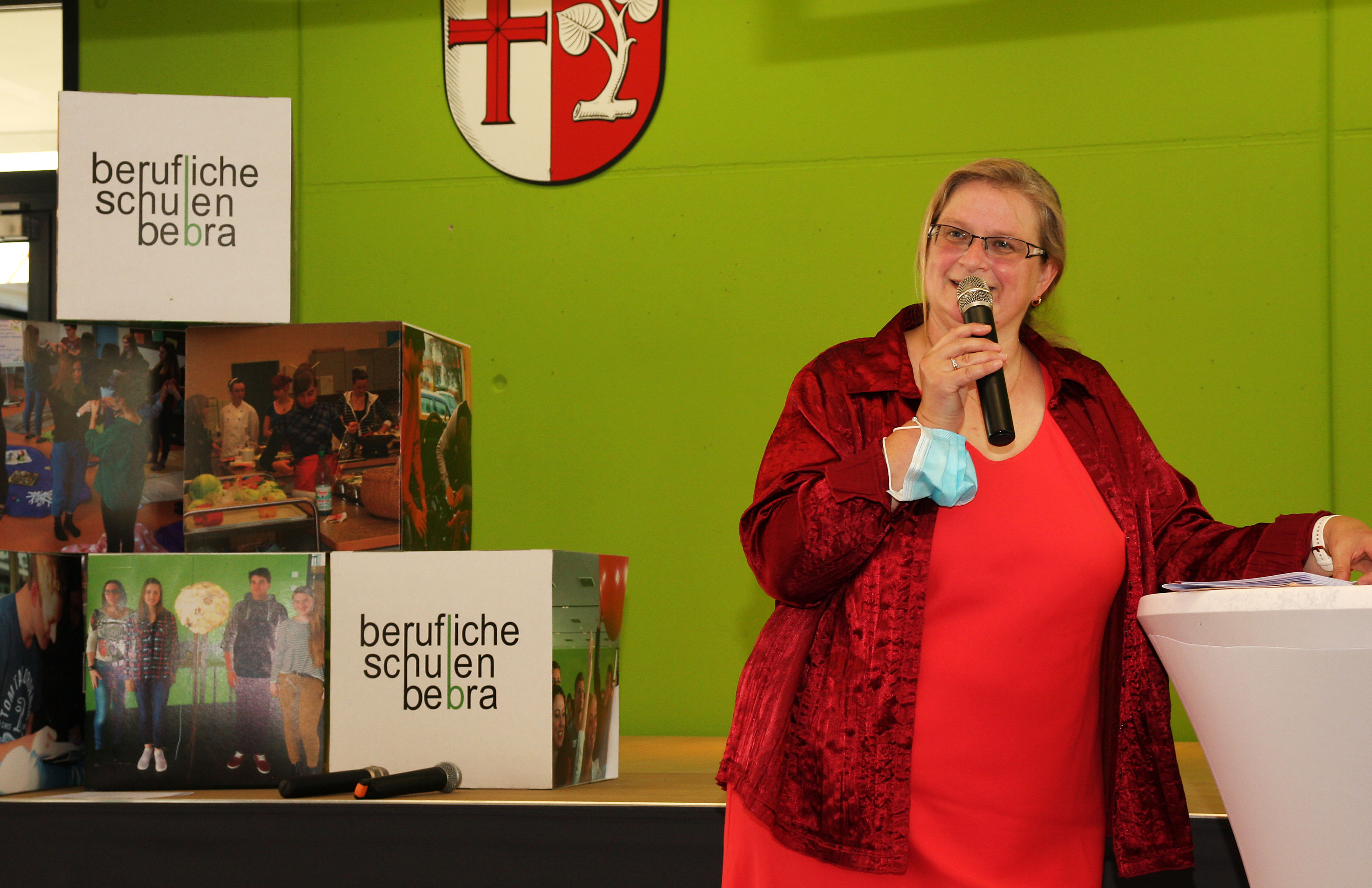 Bild 05: Schulleiterin der Beruflichen Schulen Bebra, Ivonne Buchenau, erläutert die “Corona-Regeln”
