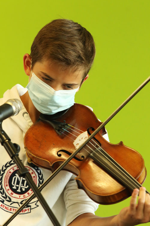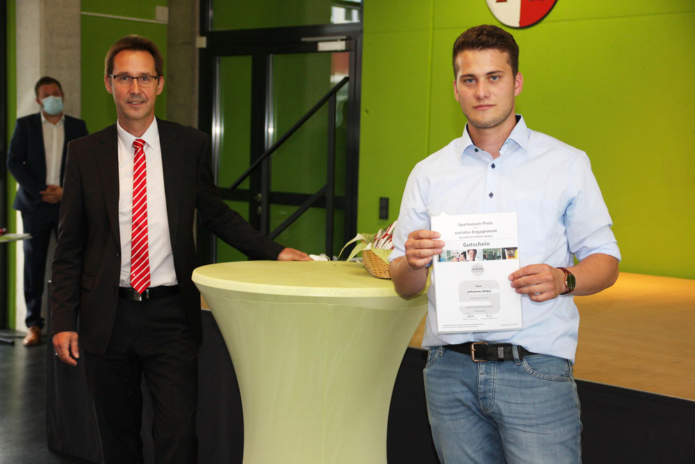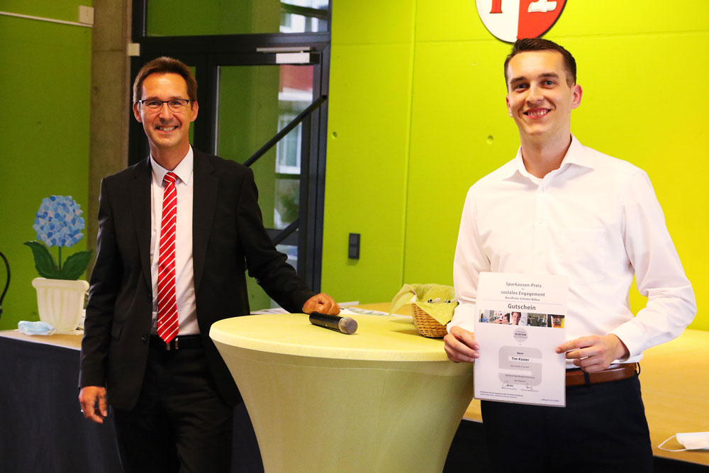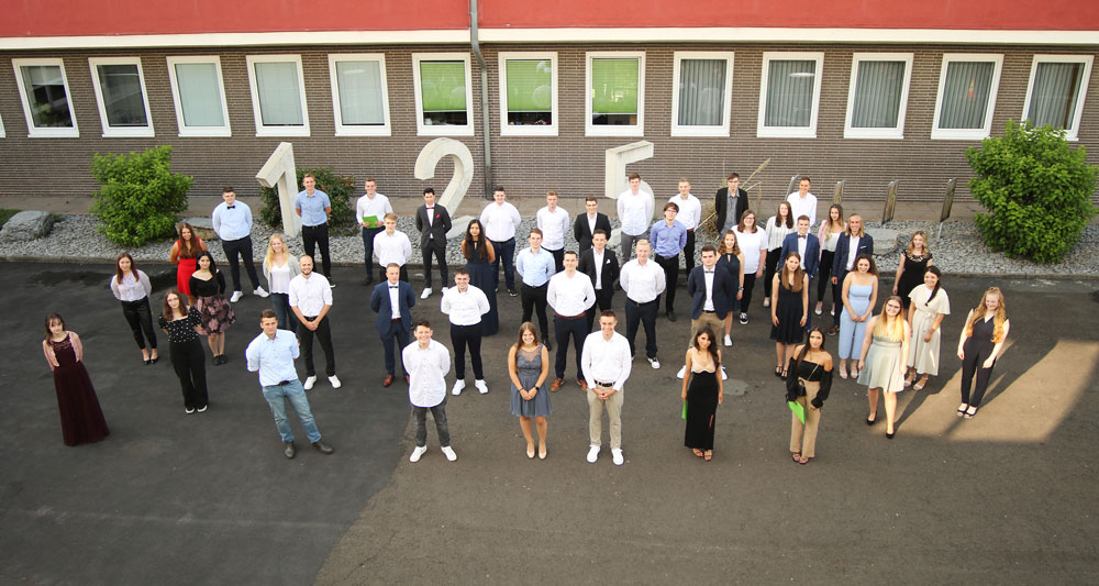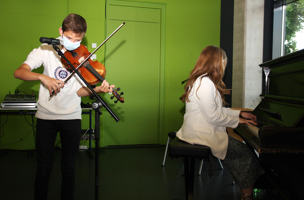 Nachdem sie alle Ehrengäste, wie den Vorsitzenden des Förderverein der Beruflichen Schulen Herbert Heisterkamp und den Vertreter der Sparkasse Hersfeld Rotenburg Martin Kraus begrüßt hatte, sagte sie entschieden, „ das Wort welches wir in den letzten eineinhalb Jahren täglich gehört haben, werden sie heute kein einziges Mal hören.“ Der Tag der Verabschiedung stand unter dem Motto „ein Schritt in Richtung Freiheit“ und so sollte es auch sein. Natürlich hatten Ivonne Buchenau und Abteilungsleiter Sebastian Götz alle nötigen Vorkehrungen getroffen, die in der aktuellen Situation erforderlich waren und trotzdem war einiges möglich, was den Abend für die ehemaligen Schüler und Schülerinnen unvergesslich machte. Noel Stockmann und Chantal Bubb beeindruckten die gekommenen Gäste mit vier Musikstücken und zeigten eindrucksvoll, wie sie ihre Instrumente, die Geige und das Klavier, beherrschten. Peter Knierim, Lehrer an den Beruflichen Schulen Bebra, bot allen Schülern und Schülerinnen an, im Außenbereich ein Erinnerungsfoto zu machen und auch Gruppenbilder waren unter Einhaltung der Abstandsregeln möglich.