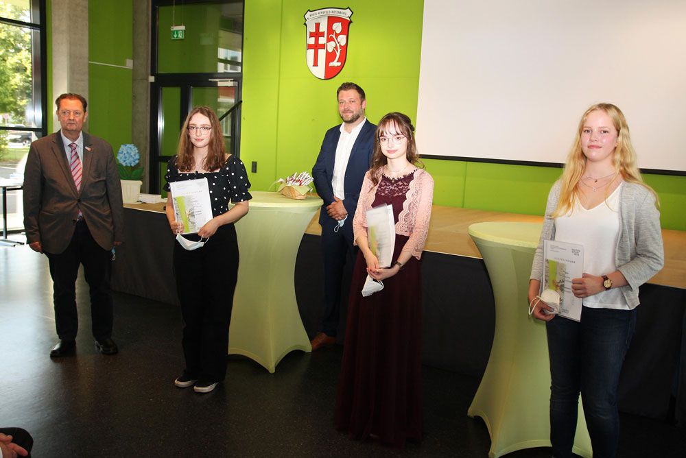 Neben den Ehrungen der Jahrgangsbesten wurden auch Schüler für besondere Leistungen ausgezeichnet. Mit dem Sparkassenpreis bedachte Martin Krauss die Doppelspitze der Schülervertretung Johannes Ritter und Tim Küster, sowie Simon Janzen für eine besonders gute Präsentationsprüfung. Inga Peterson überreichte Charlotte Lorey noch den Ehrenpreis Chemie, die Abiturientin hatte mit 98,5 von 100 möglichen Punkten eine beeindruckende und zugleich seltene Leistung erreicht. Maik Tessmann erhielt die Ehrenpreise für Mathematik und Physik aus den Händen des Abteilungsleiters Götz.