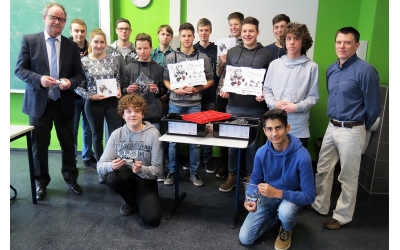 Die Klasse 11 BG Technik nahm an dem Wettbewerb "PiA – Physik im Advent" teil und gewann einen von zwei ausgelobten Schulpreisen im Wert von 850 Euro. Physiklehrer Markus Fritsch betreute die Schüler bei ihrer Teilnahme.