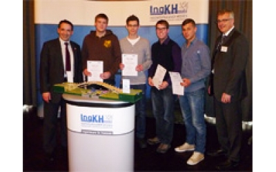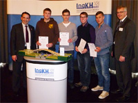 Auszubildende im dritten Lehrjahr - Fachkräfte für Straßen- Verkehrstechnik - beteiligten sich erfolgreich beim sechsten landesweiten Wettbewerb „BRÜCKENschlag“ der Ingenieurkammer Hessen unter der Schirmherrschaft der Kultusministerin Nicola Beer. Mit ihrer „Leonardo da Vinci-Brücke“ erreichten Sie den vierten Platz!