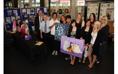 Gemälde, Kleider, Vogelhäuschen, Modelle, Korsagen – und noch viel mehr Kunstwerke, die die Schülerinnen und Schüler der Fachoberschule Gestaltung entworfen und hergestellt haben, können derzeit in der neuen Aula der Beruflichen Schulen Bebra bewundert werden.