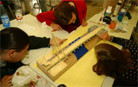 Da war Grips und handwerkliches Geschick gefragt: Eine Brücke aus Streichhölzern, Stecknadeln, Schnur und Klebstoff sollte gebaut werden, die ein 60 Zentimeter breites Tal überspannt und zudem an jeder Stelle der sechs Zentimeter breiten Fahrbahn ein Kilogramm tragen kann