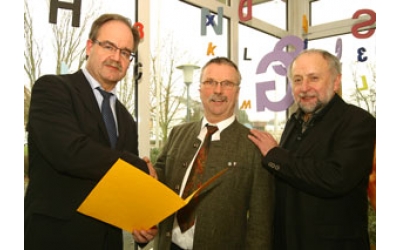Da freuten sich nicht nur der Schulleiter der Beruflichen Schulen Bebra, Wolfgang Haas (rechts) und der Vorsitzende des Vereins zur Förderung der beruflichen Aus- und Weiterbildung an den Beruflichen Schulen Bebra, Herbert Heisterkamp