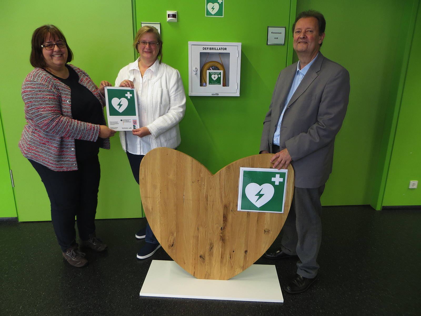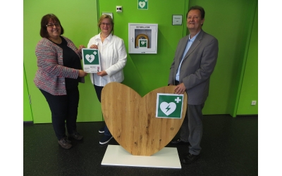 Um auch ohne Einschränkungen bei internen und insbesondere externen Veranstaltungen immer einen Defibrillator, genannt Defi, zur Verfügung zu haben, hat der Förderverein der beruflichen Schulen Bebra einen zweiten Defibrillator mit Wandschrank für die Aula der Beruflichen Schulen angeschafft.